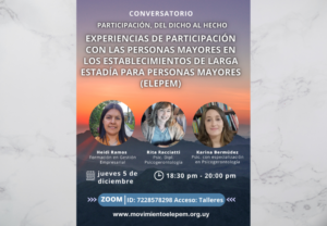 En el mismo se compartirán experiencias de participación con personas mayores que viven en establecimientos de larga estadía, conocidos en Uruguay como “Elepem”.