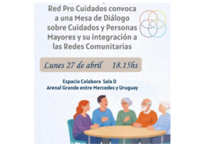 En el marco de Abril Mes de los Cuidados, denominado Prof. Rosario Aguirre en el 2026, la Red Pro Cuidados, que integra el Movimiento Elepem, convoca a participar de una Mesa de Diálogo, el día 27 de abril, hora 18.15, en Espacio Colabora, Arenal Grande casi Mercedes, Montevideo.